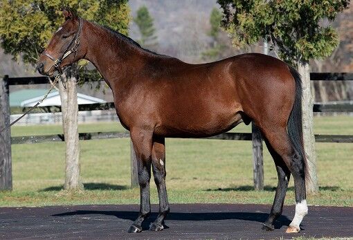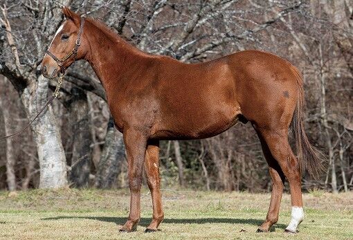 オータムセールにて(有)ノルマンディーファームが825万円(税込)で落札。ノルマンディーオーナーズクラブにて募集される事になりました。母スフィンクスは、40戦して3歳上500万下など5勝(地方2勝含む)。近親にディープインパクト(東京優駿)やウインクリューガー(NHKマイルC)など。マクフィ×サンデーサイレンス系は、オールアットワンス(カンナS)やエムオーシャトル(黒松賞)などの勝ち馬を出している配合。全体的に緩さが残っているので、トモの踏み込みが甘く、力強さに欠ける印象を受けますが…育成が進んでいけば変わってきそうです。肩の出は、悪くはなさそうです。前肢の膝は、割と綺麗な方だと思われます。繋ぎは、ゆったりしてますし、適度に角度があるので、程好い感じかと思われます。肘離れは、悪くはなさそうです。腱離れは、可もなく不可もないくらい。成長力のある牝系ですし、まだ腰が高い位置にあるので、ここから変わってきそうです。ここからの成長次第では、価格なりに楽しめそうです。
