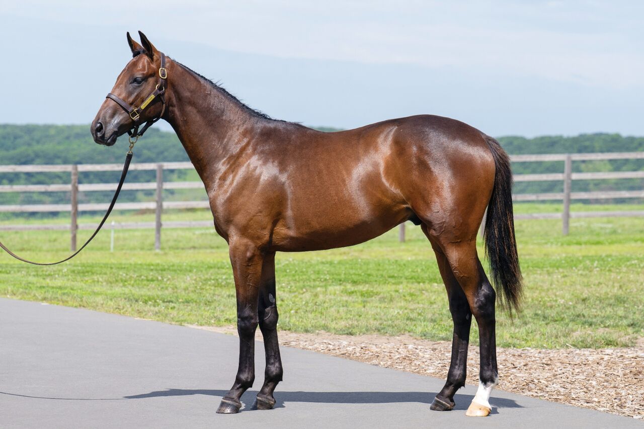 母アルベルティーヌは、21戦2勝。祖母スキアは、フィユドレール賞(G3)の勝ち馬。祖母の産駒にソールオリエンス(皐月賞)やヴァンドギャルド(富士S)など。近親にアラビアングリーム(英パークS)やラッキークリステイル(ロウザーS)、フラッタリング(ミュンスターオークス)、トロパオ(Prix Millkom)、キンベイラ(Queensferry S)、ロイヤルアルケミスト(Snowdrop S)など。レイデオロ×レッドゴッド系は、レディーゴール(2歳未勝利)などの活躍馬を出している配合。全体的に緩さが残っているので、トモの踏み込みが甘く、歩様が心許ない印象を受けますが…育成が進んでいけば変わってきそうです。肩の出は、FC2ブログランキング。前肢の膝が少し反っているので、脚元に不安が出るかもしれません。繋ぎは、やや短めで、立ち気味。肘離れは、良さそうです。腱離れも悪くなさそうです。胴は、それなり長めなので、2000mくらいならこなせそうです。牝系が少し寂しい印象を受けるので、成長力のある牝系ですし、まだ腰が高い位置にあるので、ここからガラッと変わってきそうです。ここからの成長次第では、ブログランキング。
