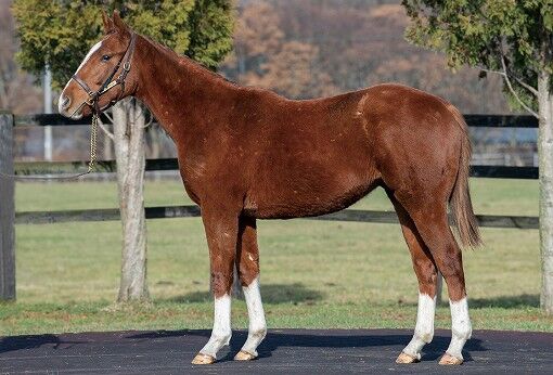 セプテンバーセールにて(有)ノルマンディーファームが704万円(税込)で落札。母スイートライラは、30戦して飛天特別など2勝。5代母ロイヤルダンスーズは、愛1000ギニーの勝ち馬。5代母の産駒にロイヤルホビット(グロシェーヌ賞)やボグロード(ガリニュールS)など。近親にクラウディングス(リュパン賞)やアンバーズイメージ(伊オークス)など。サンデーサイレンス系×ミスタープロスペクター系は、コントレイル(東京優駿)やヴィルシーナ(ヴィクトリアマイル)などの活躍馬を出している配合。全体的に緩さが残っているので、トモの踏み込みが甘く、力強さに欠ける印象を受けますが…育成が進んでいけば変わってきそうです。肩の出は、可もなく不可もないくらい。腱離れは、可もなく不可もないくらい。前肢の膝は、割と綺麗な方だと思われます。繋ぎは、やや短めですが…適度に角度があります。肘離れは、可もなく不可もないくらい。まだまだ絞れそうですが…腹袋は、ドッシリしているので、好感が持てます。胴は、そこまで長くもないので、マイルくらいまでが良さそうです。牝系が寂しい印象を受けるので、成長力に疑問が残りますが…まだ腰が高い位置にあるので、ここから変わってきそうです。ここからの成長次第では、価格なりに楽しめそうです。