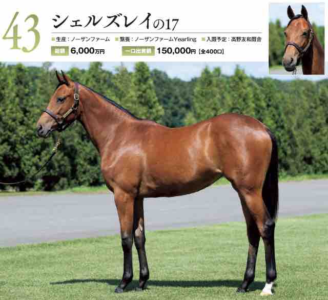 続きまして...募集総額6000万円のディープインパクト産駒「シェルズレイの17」。