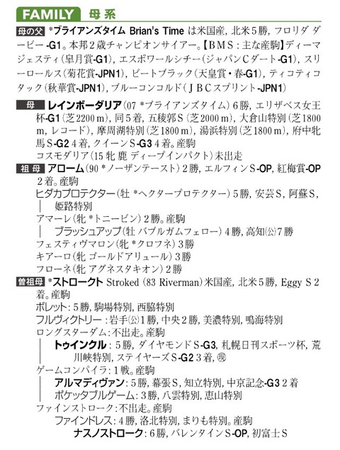 サンデーサイレンス系×サドラーズウェルズ系は、ヘブンリーロマンス(天皇賞・秋)やアンライバルド(皐月賞)などの活躍馬を出している配合。